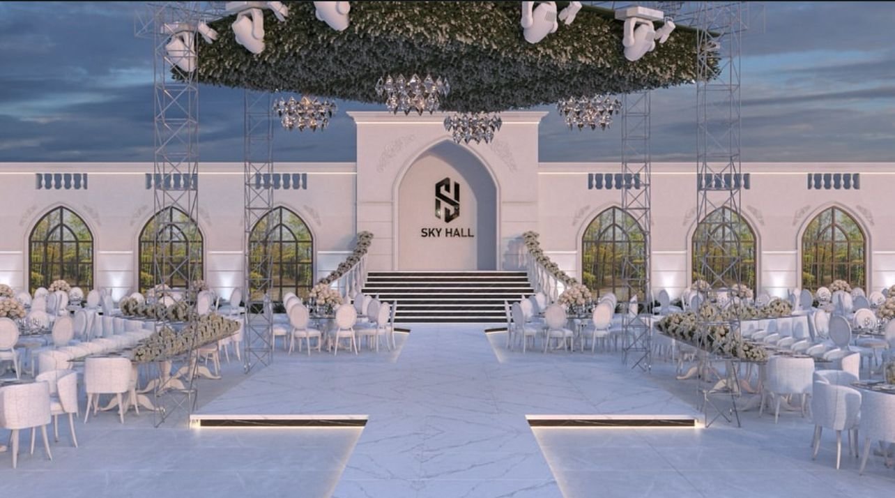 is a fully integrated wedding hall that combines elegance and luxury, designed to offer the bride and groom and their guests an exceptional and unforgettable experience. It features spacious areas capable of accommodating large numbers of guests, along with modern décor and elegant lighting that create an atmosphere of sophistication and joy. In addition, SkyHall provides comprehensive services including event organization, photography, and hospitality, making the wedding arrangements easier for the couple and allowing them to enjoy peace of mind on one of the most important nights of their lives.