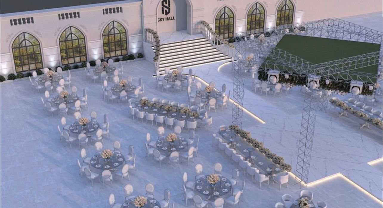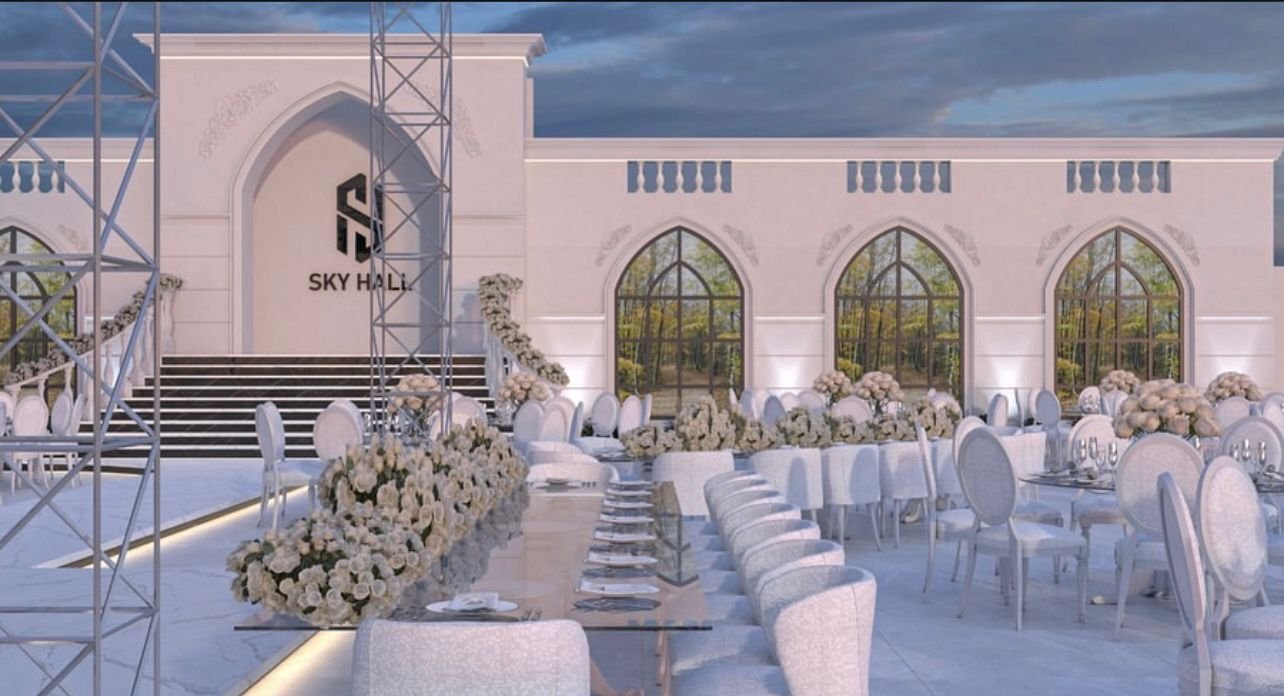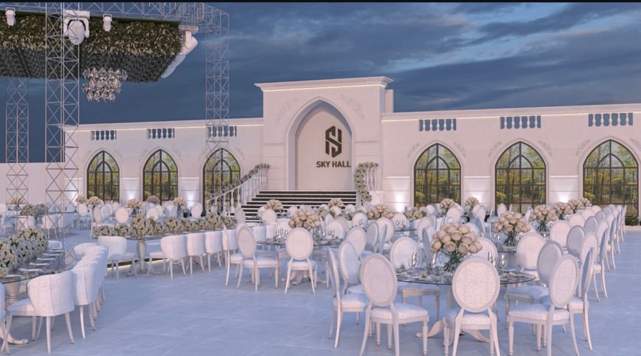 is a fully integrated wedding hall that combines elegance and luxury, designed to offer the bride and groom and their guests an exceptional and unforgettable experience. It features spacious areas capable of accommodating large numbers of guests, along with modern décor and elegant lighting that create an atmosphere of sophistication and joy. In addition, SkyHall provides comprehensive services including event organization, photography, and hospitality, making the wedding arrangements easier for the couple and allowing them to enjoy peace of mind on one of the most important nights of their lives.